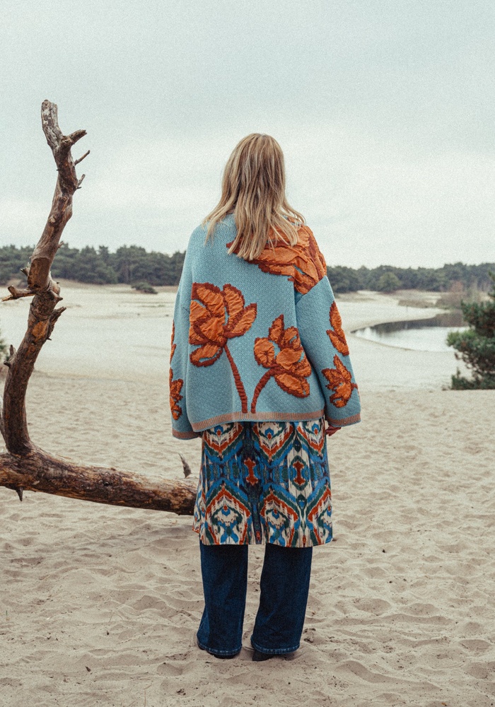 Ontdek ODYSSEA, de lichtere zomerversie van ons iconische OSIRIS-vest. Gemaakt van zachte, volumineuze jacquardstof met bloemenprint, biedt het dezelfde opvallende charme in een ademende, lichtgewicht uitvoering. Perfect voor zomeravonden of wandelingen langs de kust bij zonsondergang. ODYSSEA combineert moeiteloos elegantie met comfort en laat een subtiele, onvergetelijke indruk achter.