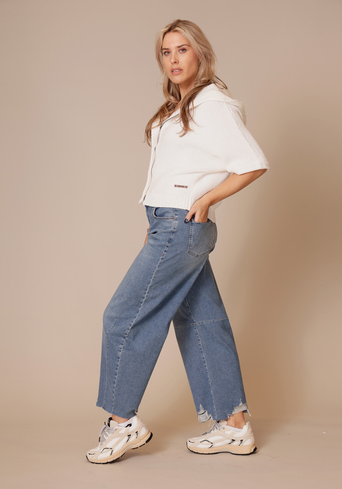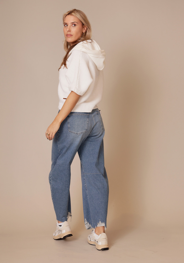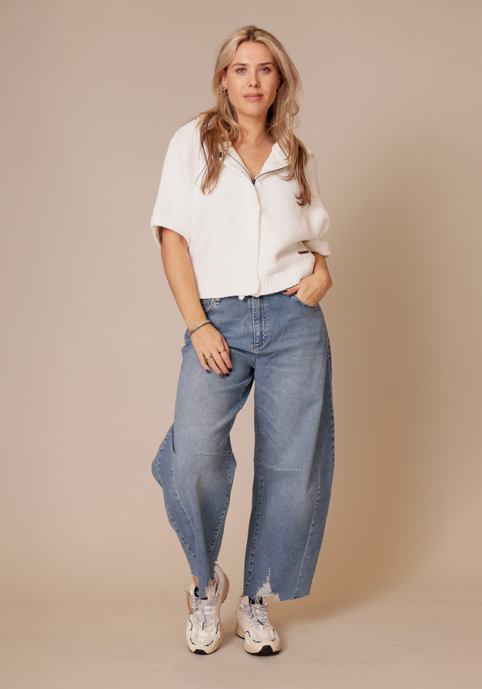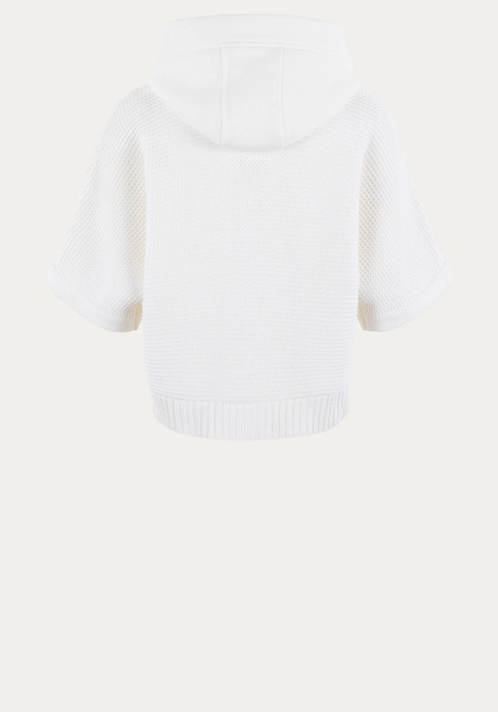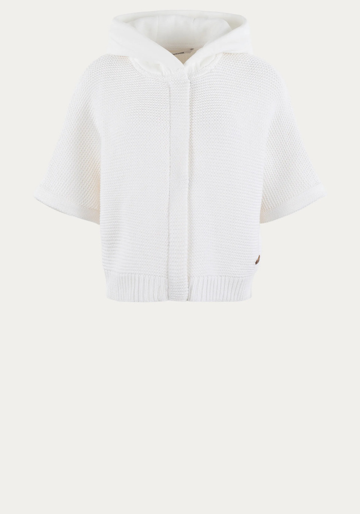 De Timmy cardigan is gemaakt van een comfortabele gebreide mix van katoen en polyacryl en heeft korte mouwen, perfect voor zomerse dagen. De capuchon in sweatstof, praktische ritssluiting met blinde drukknoopsluiting en losse pasvorm geven het vest een sportieve, verzorgde uitstraling met een ontspannen feel.