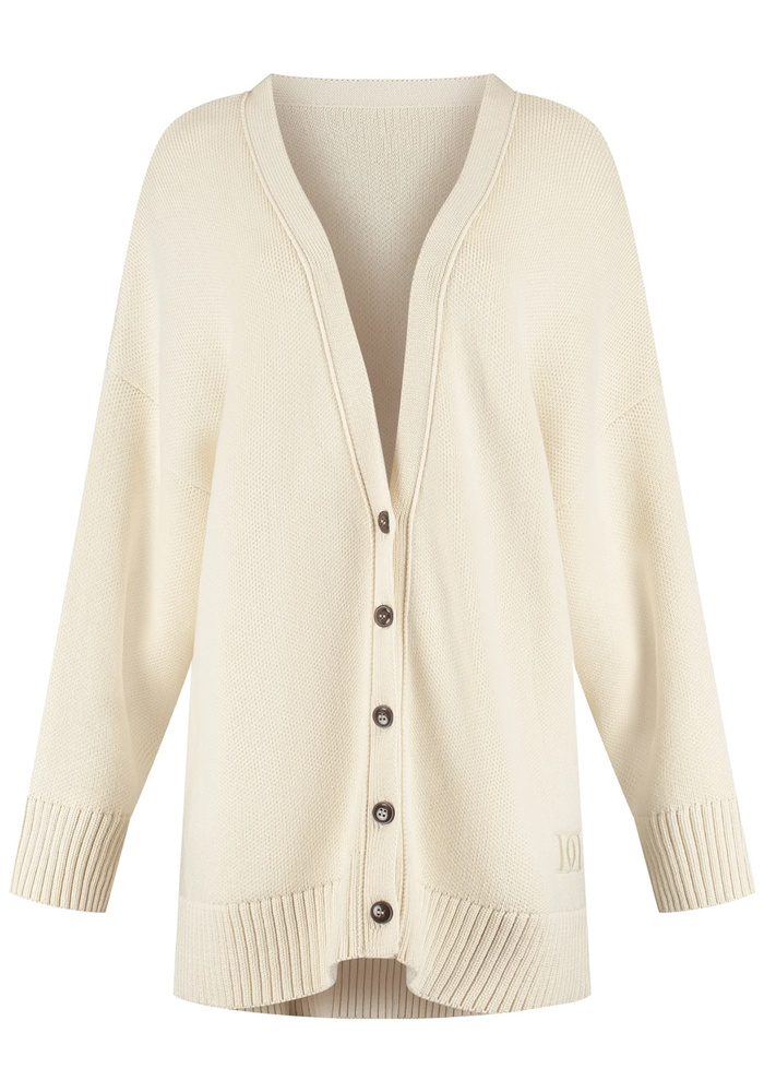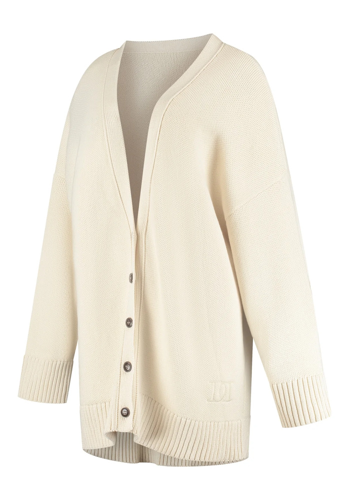 De Lennox cardigan is een comfortabele boyfriend-cardigan van 100% katoen. Het compacte breisel en de oversized fit zorgen voor een relaxte maar flatterende look.