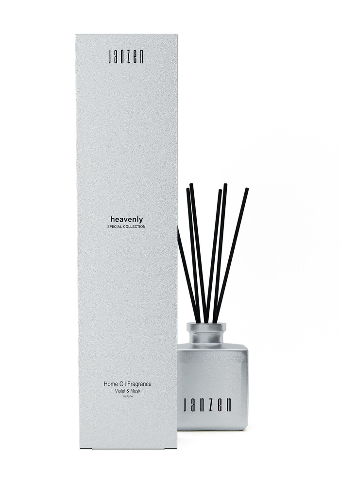 Deze geurstokjes van Janzen zijn 200ml. Via de speciale houten stokjes krijgt je favoriete parfum de kans zich te verspreiden door het huis. Een boeket van delicate viooltjes, omhuld door een vleugje zachte musk. De sprankelende topnoten van bergamot en het frisse van de citroen komen samen met het zoete van de zwarte bes. Het parfum wordt omarmt met een poederige touch van de lelietjes-van-dalen, wat Heavenly een elegante en gebalanceerde geur maakt voor iedere gelegenheid.