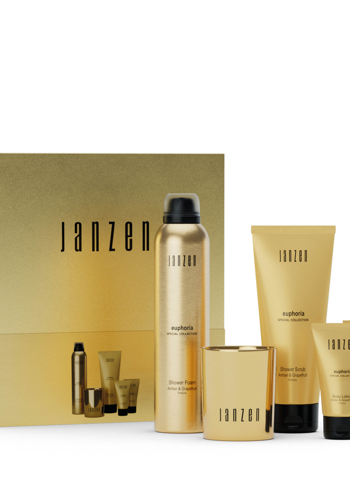 Een feestelijk, volledig gouden cadeau doos met daarin je favoriete home & body producten in de geur uit de Special Collection: Euphoria. De combinatie van de producten geven je een ultieme geurbeleving van Euphoria zowel in de douche, als in huis.
