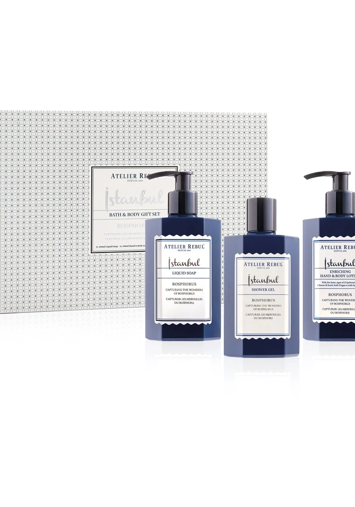 De set bestaat uit een Istanbul geschenkverpakking met daarin de Istanbul Handzeep 250ml, de Istanbul Douchegel 250ml & de Istanbul Hand & Body Lotion 250ml.