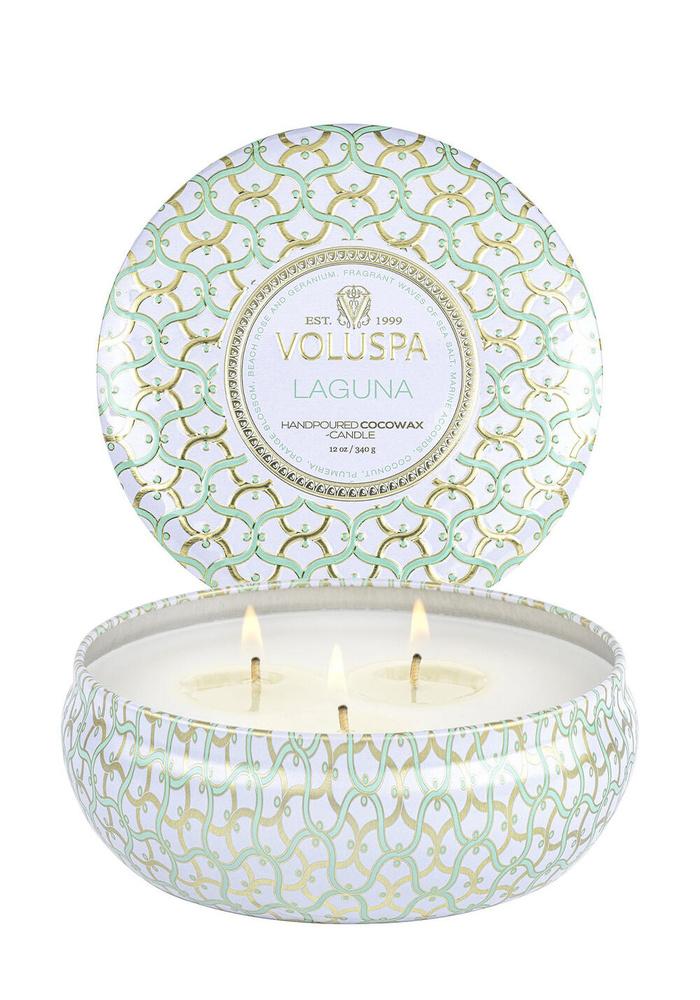 Deze heerlijke nieuwe kaarsen van Voluspa zijn echt een aanwinst voor jouw huis! De geur Laguna is een combinatie van sea salt, plumeria en coconut. Deze geur doet je denken aan de frisse see en zon, kortom dromen van vakantie.. De kaars zelf heeft een stijlvolle verpakking.