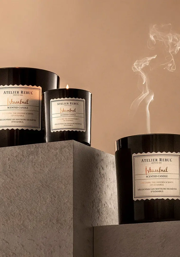 Laat u betoveren door de geheime geuren van Istanbul met deze luxueuze geurkaars van Atelier Rebul.