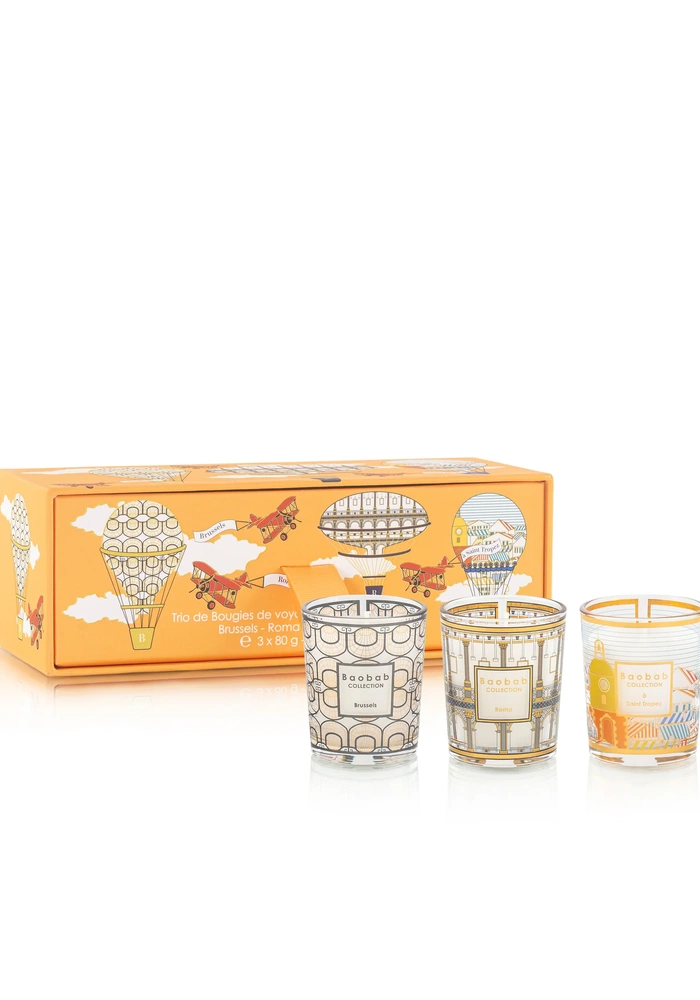 De trio travel candles is een set van 3 mini-kaarsen. De set bevat de geuren Brussels, Roma & Saint-Tropez. Een ideale cadeautip!