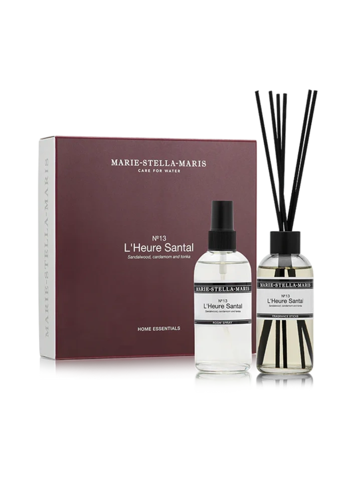 Het ideale duo voor een subtiele geurbeleving in huis. De geurstokjes verspreiden de geur continu, terwijl de roomspray zorgt voor een directe geurboost wanneer je dat wilt. Geniet van de verfijnde geur No.13 L’Heure Santal, met warme tonen van sandelhout, kardemom en tonkaboon.
