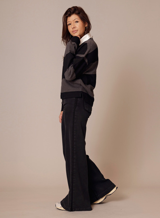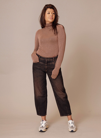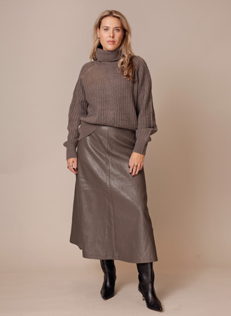 Yaya - Col Sweater Rib - Dark taupe grey melange