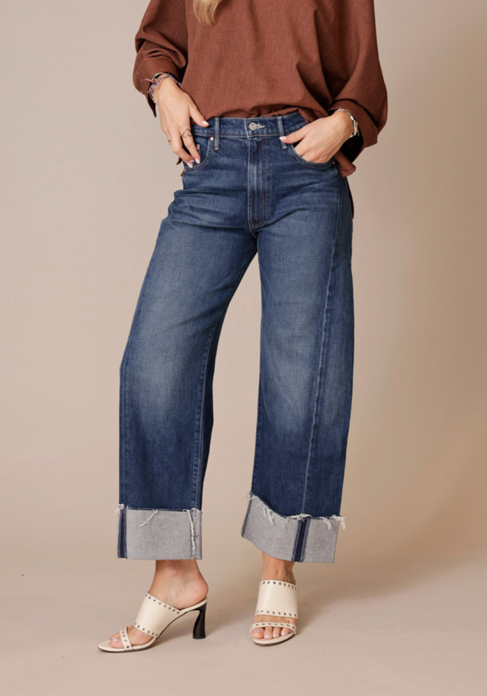 Deze Half Pipe jeans van MOTHER ademen pure Americana dankzij de klassieke blauwe 'Perfectly Imperfect'-wassing en de rafelige, omgeslagen zoom. Ze zijn in Los Angeles gemaakt in een moeiteloos wijde pasvorm.
