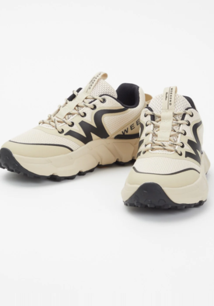 De sneakers van Weekend MaxMara zijn vetersneakers met een laag model, uitgevoerd in technische mesh met ton-sur-ton gecoate details. De contrasterende voering en de kenmerkende grosgrain hiellus geven de schoen een moderne uitstraling. Metalen veteroogjes en trekkingveters zorgen voor een sportieve touch. De Vibram-rubberzool biedt optimaal comfort, stabiliteit en grip, terwijl het contrasterende profiel extra karakter toevoegt aan het ontwerp.