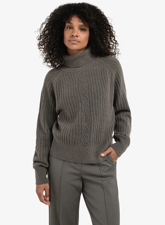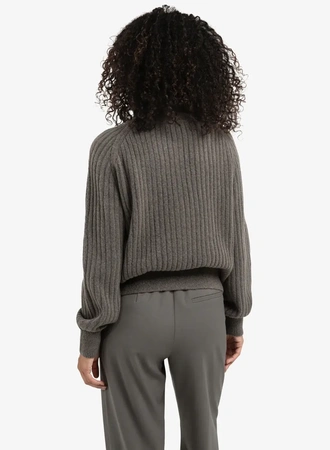 Yaya - Col Sweater Rib - Dark taupe grey melange