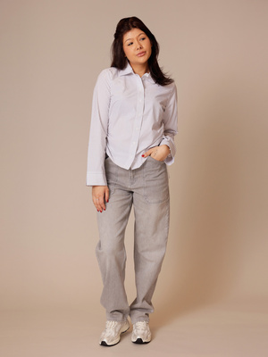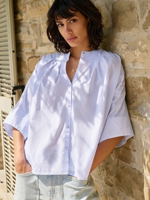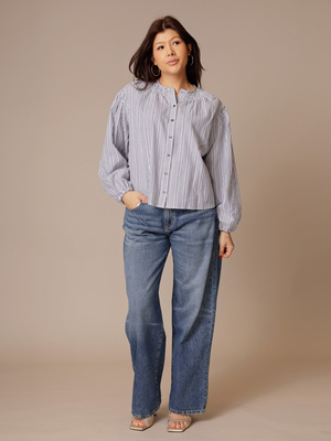 Yaya - Striped boyfriend blouse - Ice blue dessin